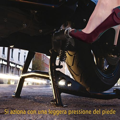 'Ενας μηχανισμός με κλειδί ασφαλείας τοποθετείται στο κεντρικό σταντ του σκούτερ και το μόνο που χρειάζεται πλέον είναι, όποτε παρκάρεις, μια απλή πίεση με το πόδι για να κλειδώσει το σταντ. Ξεκλειδώνει εξίσου εύκολα με το κλειδί της.