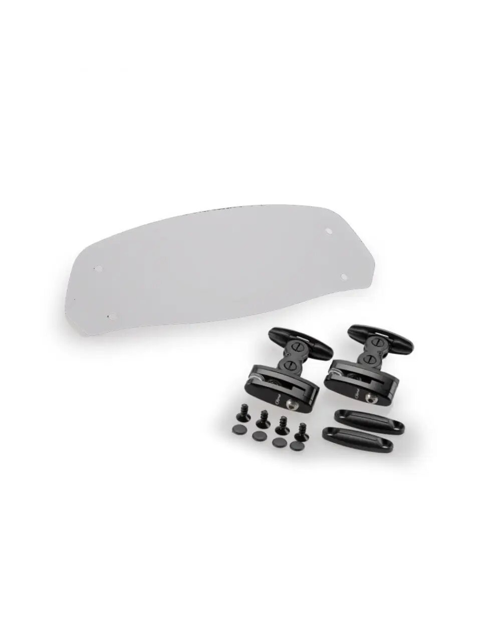 - Suitable for screen thicknesses between 3 and 5mm. It is not necessary to pierce the dome to hold the visor. - The product meets all the requirements of the German certification organization TÜV. - No drill - Height adjustable - UV resistant - Compatible with the original, according to models.