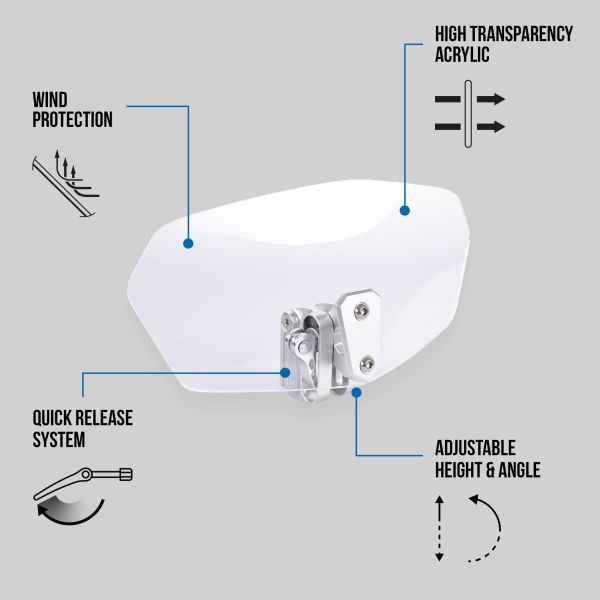 - Προστασια απο τον ανεμο : Κατευθυνει την ροη του αερα πανω απο τον αναβατη μειωνοντας ετσι τους στροβιλισμους....