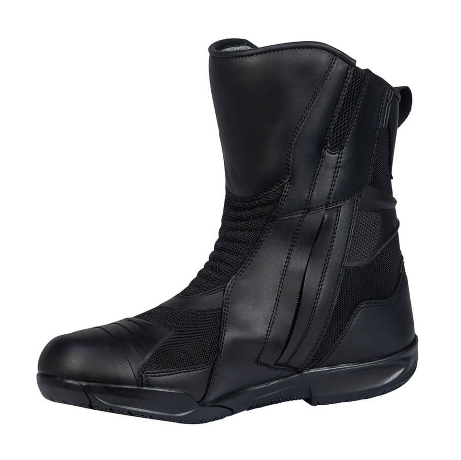 Μπότες μοτοσυκλέτας κατασκευασμένες από ανθεκτικό στην τριβή μείγμα μικροϊνών/υφασμάτων και τεχνολογία μικροέγχυσης KPU. Αδιαβροχοποίηση με μεμβράνη solto-Tex® Plus Υφασμάτινη εσωτερική επένδυση ʼνετο πέλμα Ανακλαστικό ένθετο στη φτέρνα Κλείσιμο φερμουάρ στην εσωτερική πλευρά Ένθετα KPU με Micro-Injected στο πλάι Ενισχυμένη φτέρνα Πλαστικά ένθετα σε τμήμα αστραγάλου και κνήμης Ελαστικό ύφασμαα ακορντεόν στο πέλμα για μεγαλύτερη άνεση Προστασία στην περιοχή του λεβιέ ταχυτήτων με μικροέγχυση κατασκευασμένη από KPU Σόλα από καουτσούκ Vibram ανθεκτική στην τριβή
