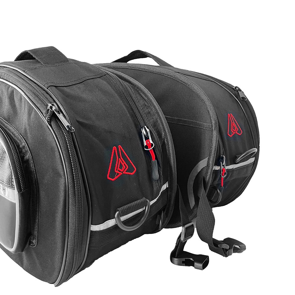 Με ανακλαστικό σχέδιο και αδιάβροχο κάλυμμα Διαθέτoυν ιμάντες για μεταφορά, έτσι ώστε να γίνεται σάκος Λαβή μεταφοράς στο άνω μέρος Εύκολη εγκατάσταση με διπλά scratch 600D polyester Ενισχυμένη εσωτερική λωρίδα και θήκη δυχτάκι Πλαϊνές τσέπες carbon Περιέχει και ελαστικό ιμάντα πρόσδεσης