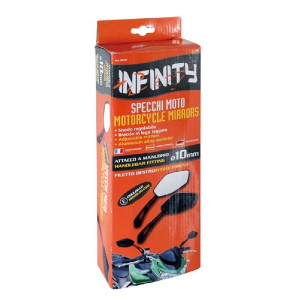 Καθρέπτες μοτό Infinity ρυθμιζόμενοι σε μαύρο χρώμα, με σπείρωμα βίδας 10mm.