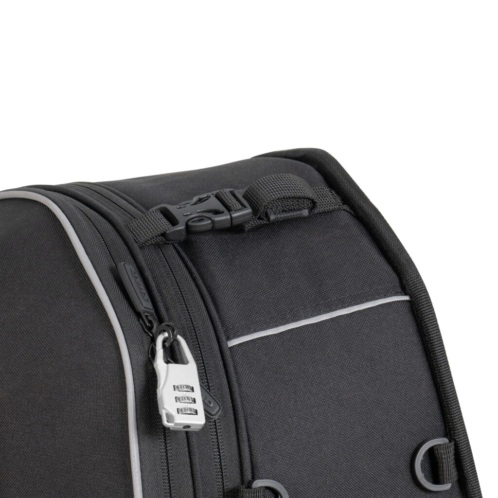 Οι ανακλαστικές λεπτομέρειες στο πλάι και το πίσω μέρος και οι λαβές μεταφοράς ολοκληρώνουν αυτές τις ευέλικτες τσάντες σέλας για μοτοσυκλέτες.